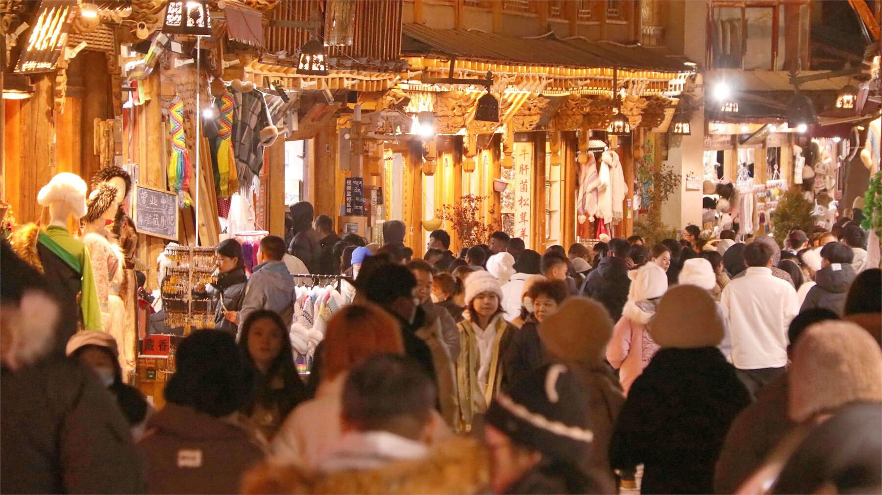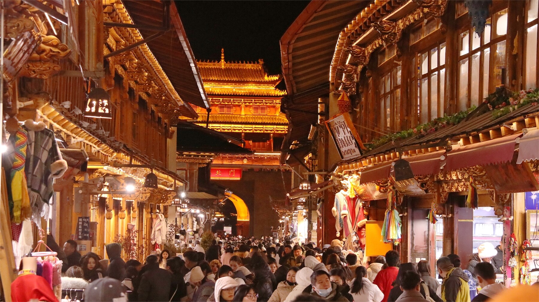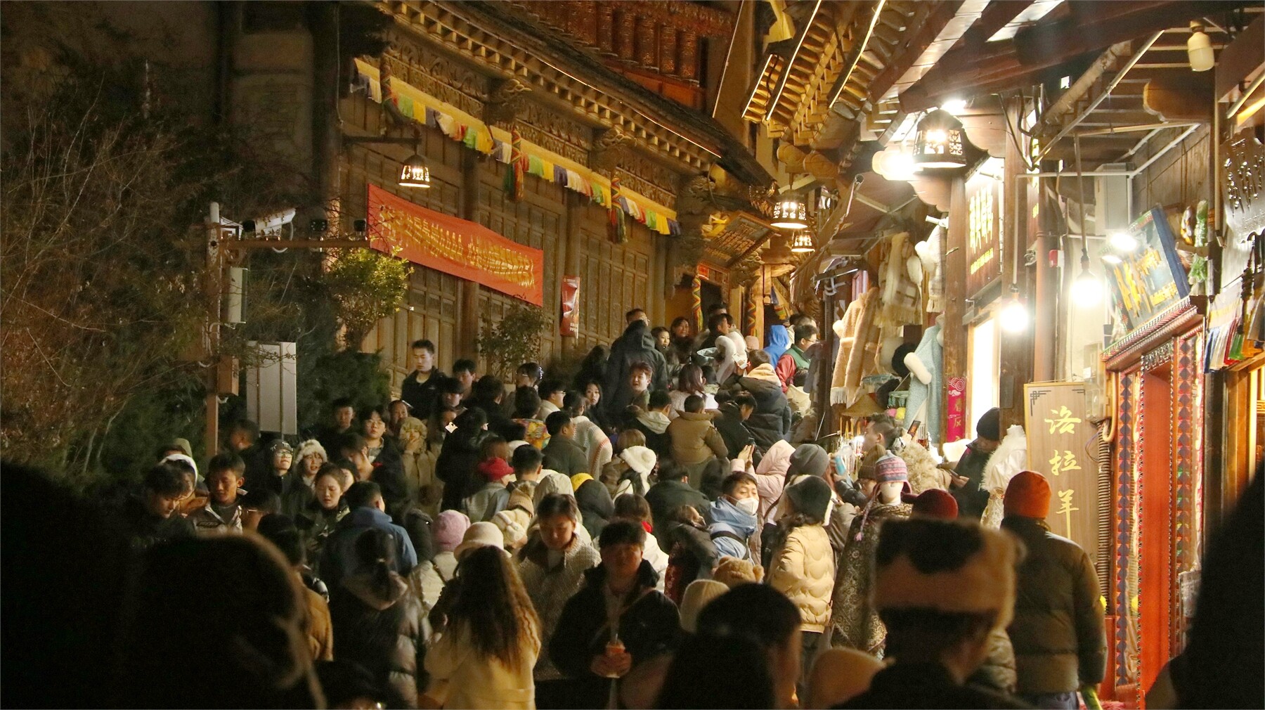 春節(jié)期間,香格里拉市獨克宗古城里來自四面八方的游客絡(luò)繹不絕。