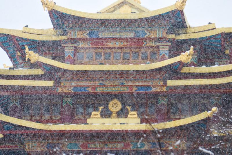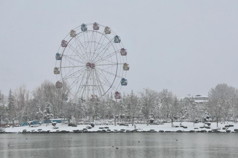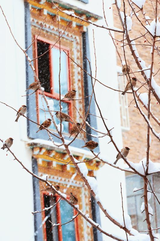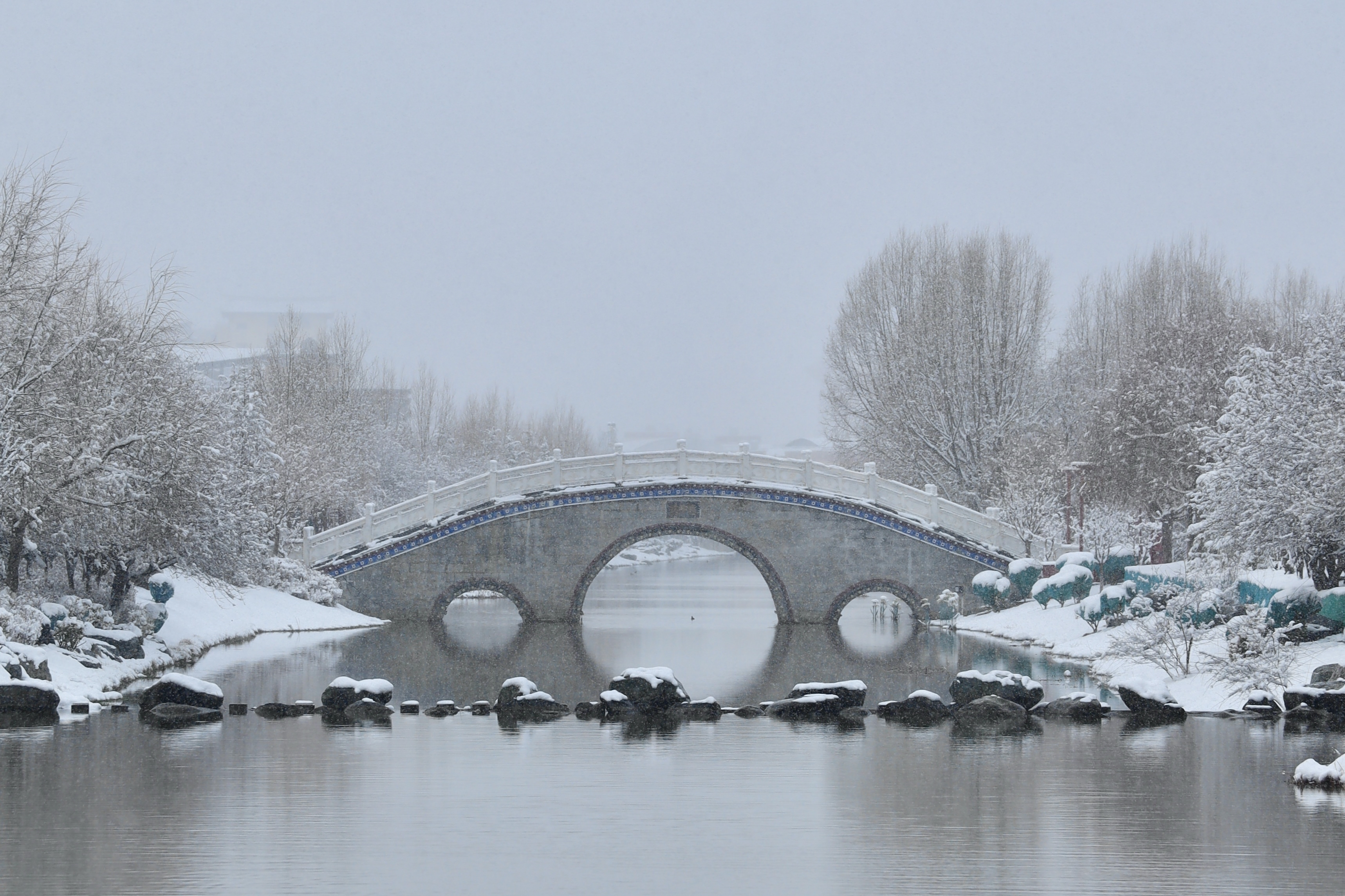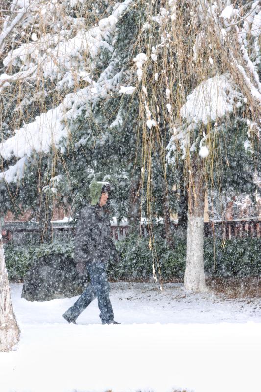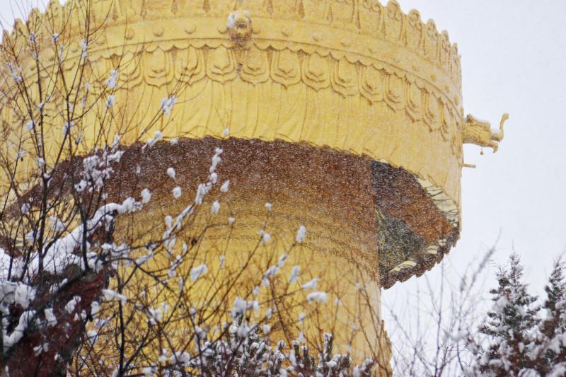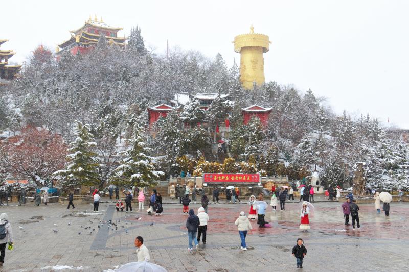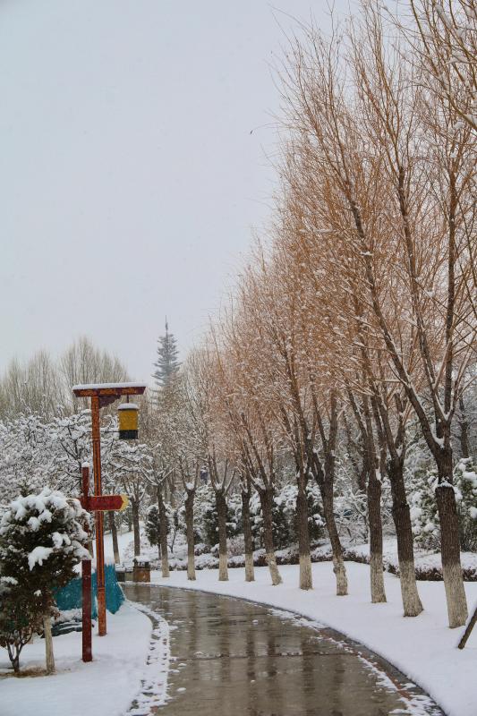 春節(jié)后第一場雪,雪花紛紛揚(yáng)揚(yáng)飄落,為香巴拉公園內(nèi)的各處景觀增加了別樣意趣。