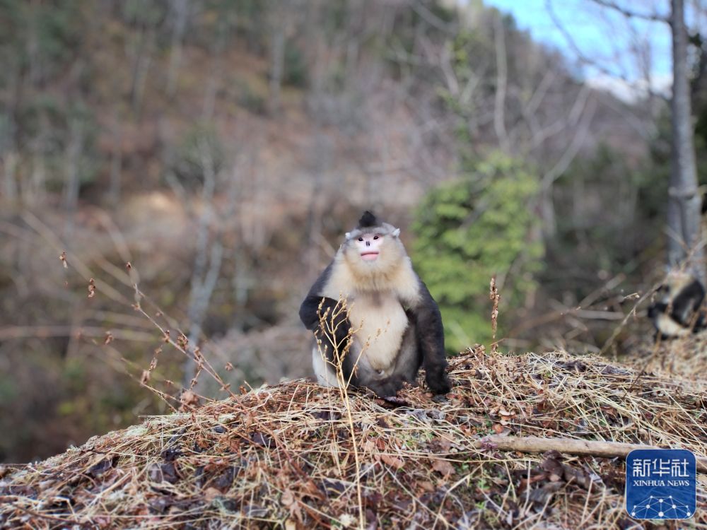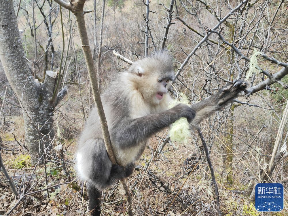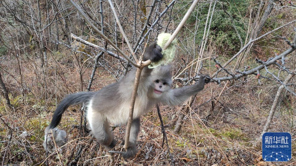 白馬雪山國家級自然保護(hù)區(qū)內(nèi)拍攝的滇金絲猴(2月27日攝)。新華社記者 浦超 攝