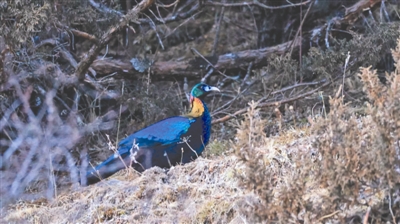 “它們在那里待了有一個小時左右,后來太陽出來,它們又飛到對面的山上去了?!敝烊纬f,當時,十余只綠尾虹雉離開時,從他們頭上飛過,鳥兒的翅膀劃破空氣聲都聽得清清楚楚。