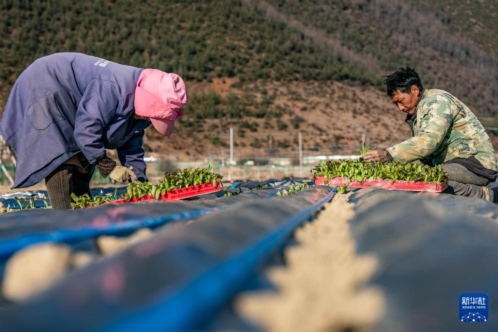 3月9日,在香格里拉市建塘鎮(zhèn),農(nóng)民在種植萵筍。新華社記者胡超攝
