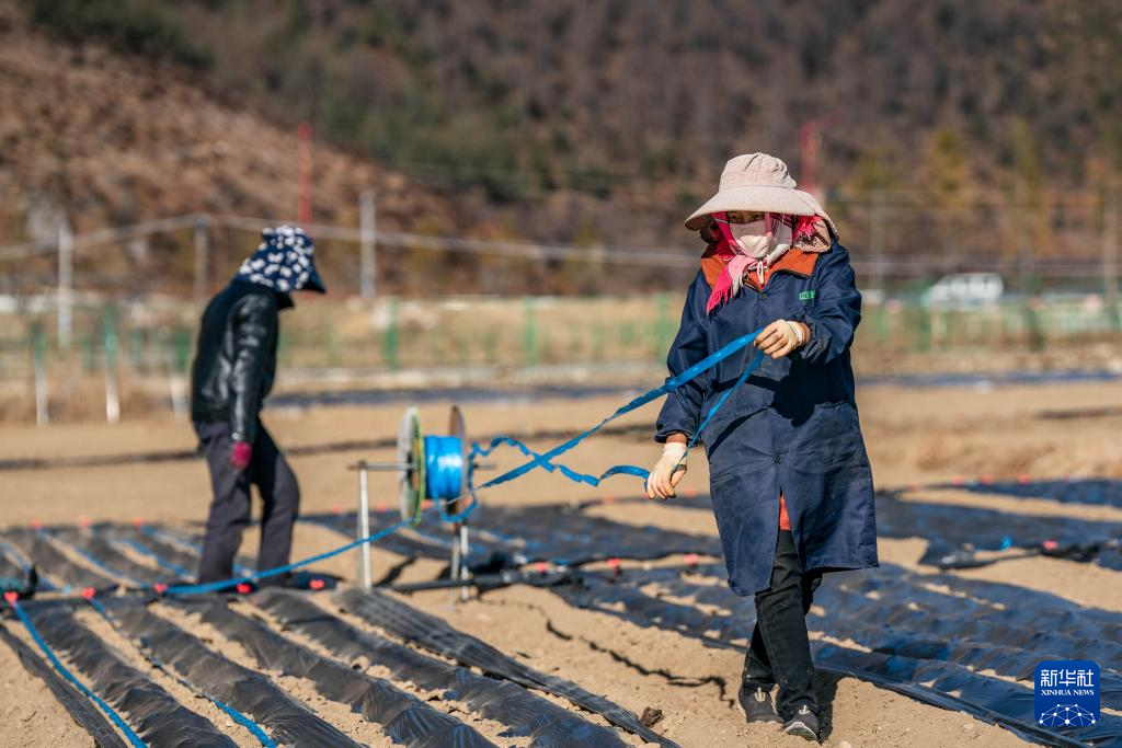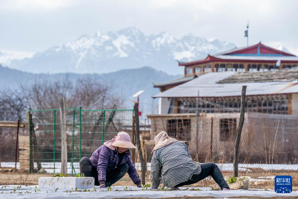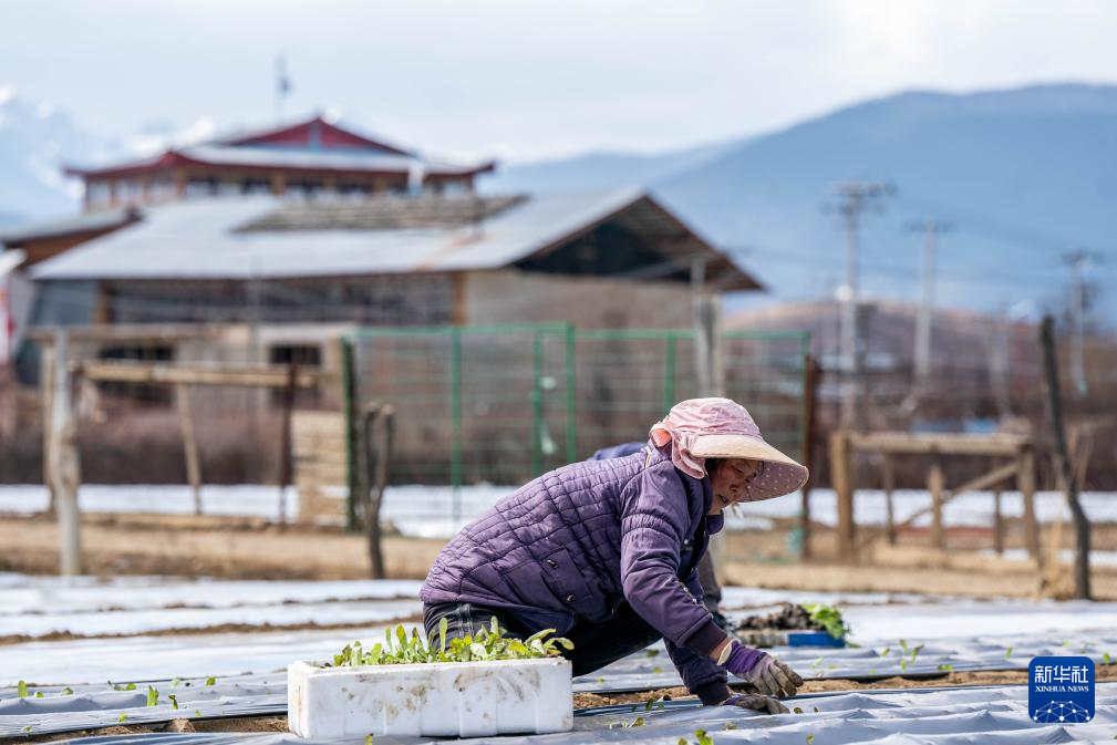 3月9日,在香格里拉市建塘鎮(zhèn),農(nóng)民在田間勞作。新華社記者胡超攝