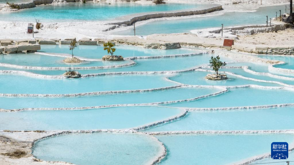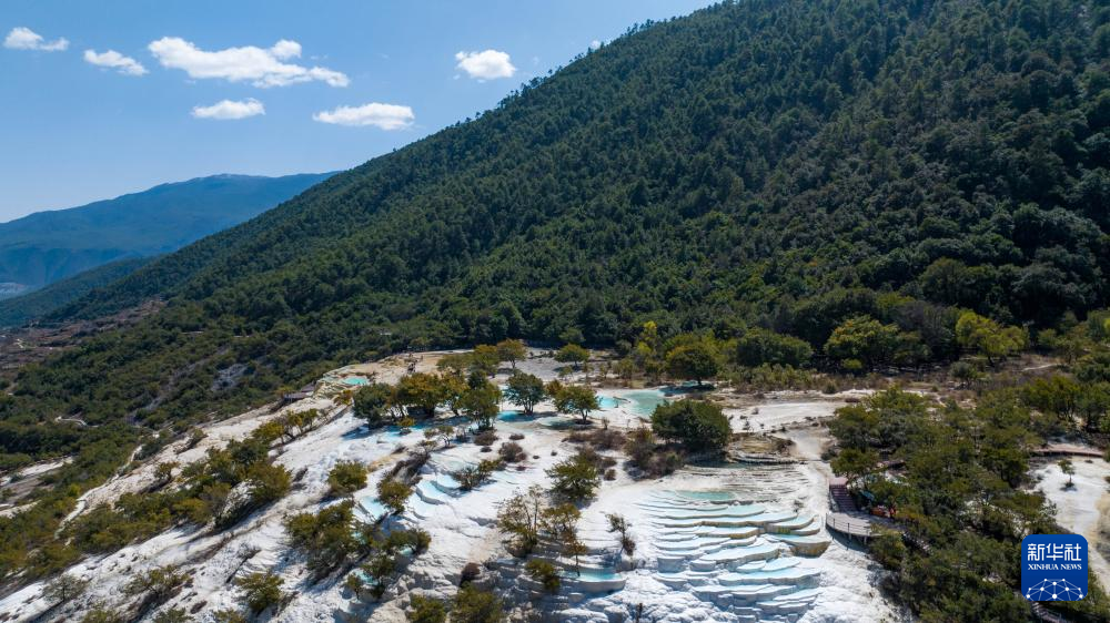 3月10日在香格里拉市三壩鄉(xiāng)拍攝的白水臺(tái)一景(無人機(jī)照片)。新華社記者 胡超 攝