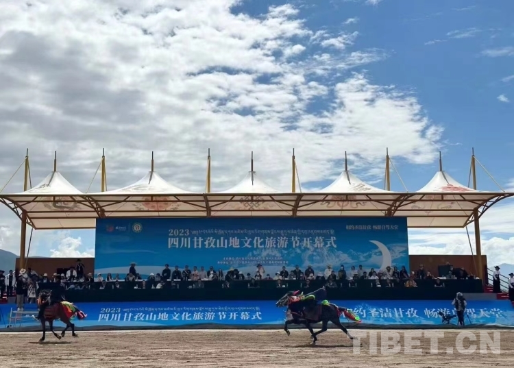 圖為2023年“四川甘孜山地文化旅游節(jié)開(kāi)幕式” 供圖:來(lái)馬鎮(zhèn)鎮(zhèn)長(zhǎng)奪吉