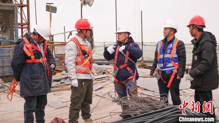 圖為技術(shù)人員指導封頂工作。韓奎忠 攝
