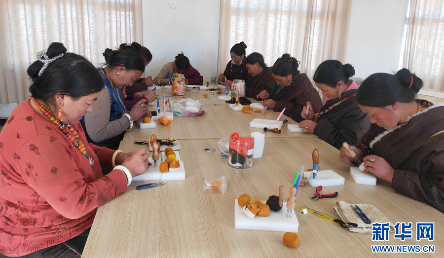 挑選牦牛絨、染色、塑形……在一雙雙巧手的努力下,一個個惟妙惟肖的藏狐掛飾初具雛形,幾天后,這些掛飾將從高原賣向北京、廣州等地。“現(xiàn)在毛氈手工藝品供不應求,姐妹們靠手藝能增加不少收入?!眮啲斔髂谴虬靡粋€毛氈杯墊,滿臉笑容。