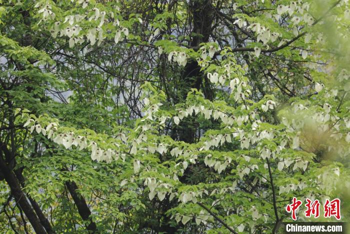 初夏時(shí)節(jié),四川省阿壩州松潘縣小河鎮(zhèn)雙河村西溝境內(nèi)的野生珙桐迎來(lái)盛花期,上萬(wàn)株珙桐花在山間次第開(kāi)放,白色的花朵迎風(fēng)飄動(dòng),猶如漫天飛舞的白鴿。西溝的野生珙桐花分布面積達(dá)8公里,共2萬(wàn)多畝,是目前阿壩州發(fā)現(xiàn)面積最大的珙桐林。
