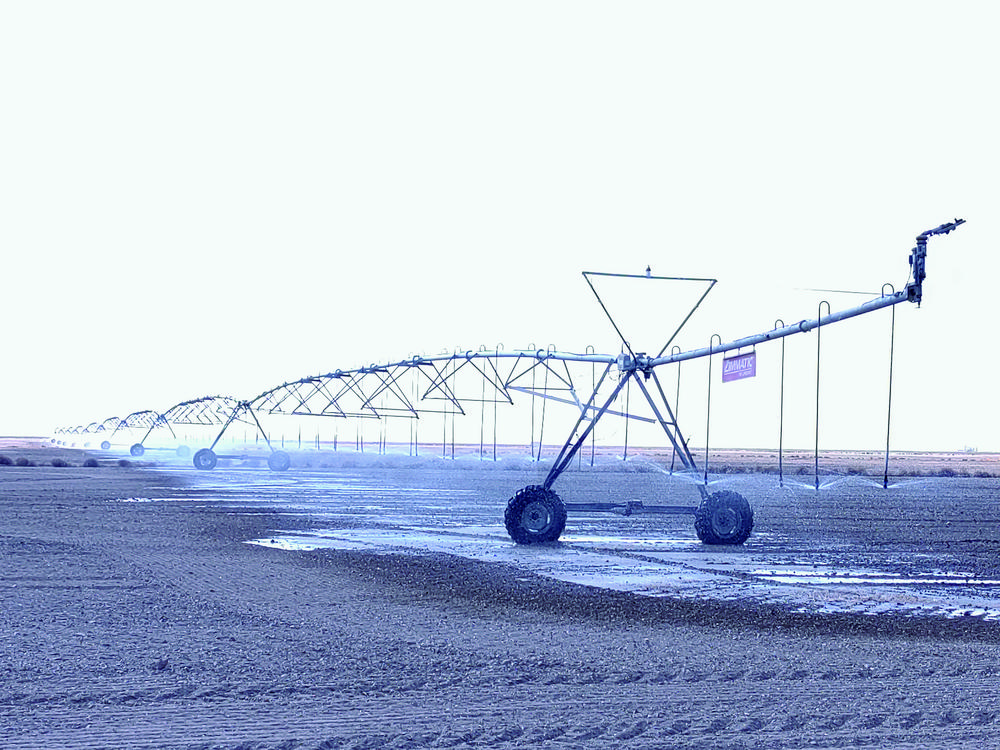 大型噴灌機(jī)行駛在鹽堿地。牛玉嬌 攝