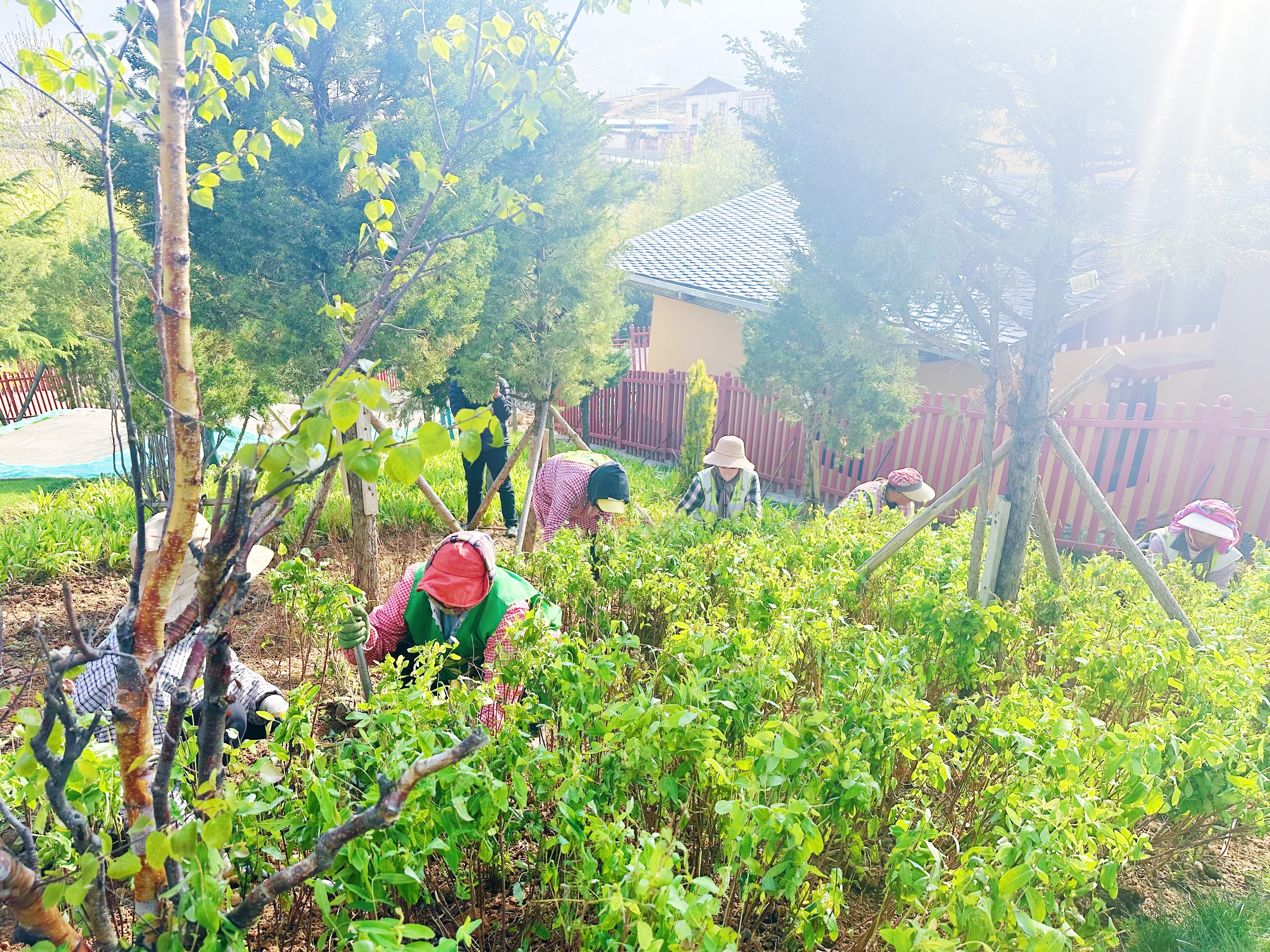 當(dāng)記者走近拉姆央措湖觀景臺(tái)附近,綠化養(yǎng)護(hù)工人們穿梭其間,他們或蹲或站,有的正對(duì)樹苗進(jìn)行補(bǔ)種,有的忙著清理灌木叢中的雜草,還有的正在對(duì)綠化苗木進(jìn)行全面的澆灌,到處一派繁忙景象。