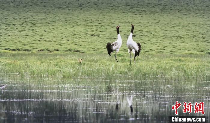 圖為祁連山國家公園青海片區(qū)內(nèi)的黑頸鶴。祁連山國家公園青海省管理局供圖