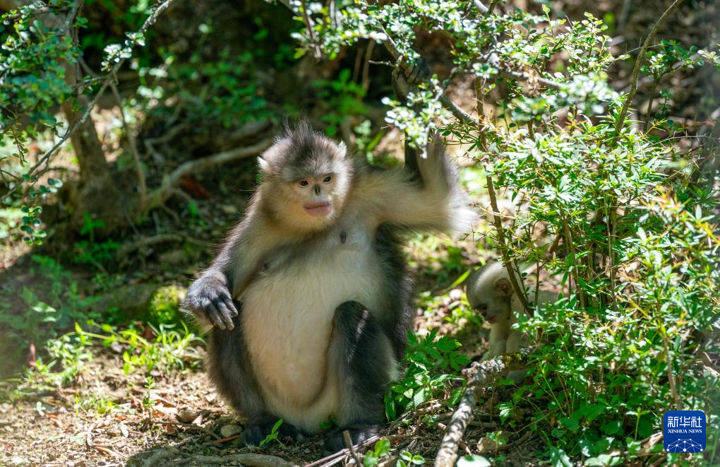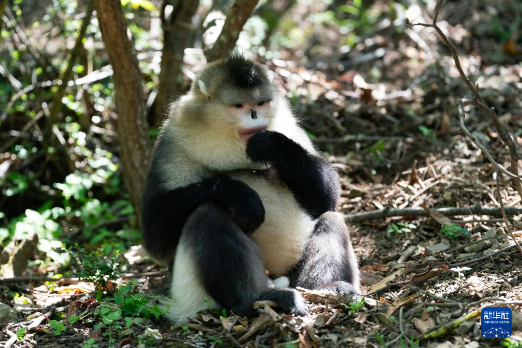 5月23日,在白馬雪山國家級自然保護(hù)區(qū)響古箐片區(qū)內(nèi),一只滇金絲猴在樹下活動(dòng)。新華社記者 陳欣波 攝