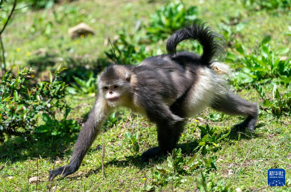 這是5月23日在白馬雪山國家級自然保護(hù)區(qū)響古箐片區(qū)內(nèi)拍攝的一只滇金絲猴。新華社記者 陳欣波 攝