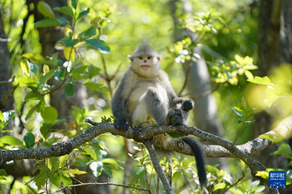 5月23日,在白馬雪山國家級自然保護(hù)區(qū)響古箐片區(qū)內(nèi),一只滇金絲猴在樹上休息。新華社記者 陳欣波 攝