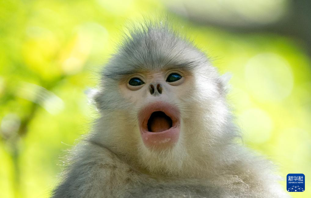 5月23日,在白馬雪山國家級自然保護(hù)區(qū)響古箐片區(qū)內(nèi),一只滇金絲猴在林間發(fā)出叫聲。新華社記者 陳欣波 攝