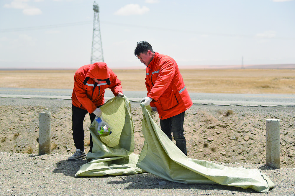 一邊收垃圾,香多才仁一邊對司機(jī)宣傳道:“這里是三江源國家公園,也是可可西里世界自然遺產(chǎn)地,這里的生態(tài)環(huán)境需要我們所有人共同守護(hù),希望大家自覺把垃圾扔進(jìn)垃圾桶?!?/p>