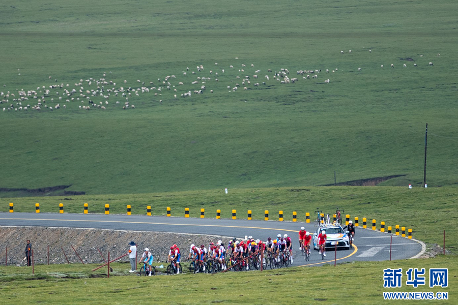 7月10日,2024第二十三屆環(huán)青海湖國際公路自行車賽第四賽段貴德-共和比賽現(xiàn)場。新華網(wǎng) 潘彬彬 攝