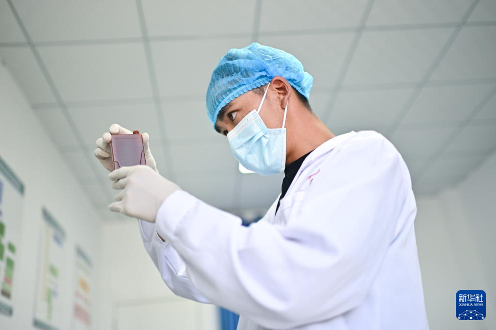 7月31日,青海省果洛藏族自治州達(dá)日縣窩賽鄉(xiāng)衛(wèi)生院醫(yī)生格桑冷智在進(jìn)行醫(yī)學(xué)檢驗(yàn)。新華社記者 張龍 攝