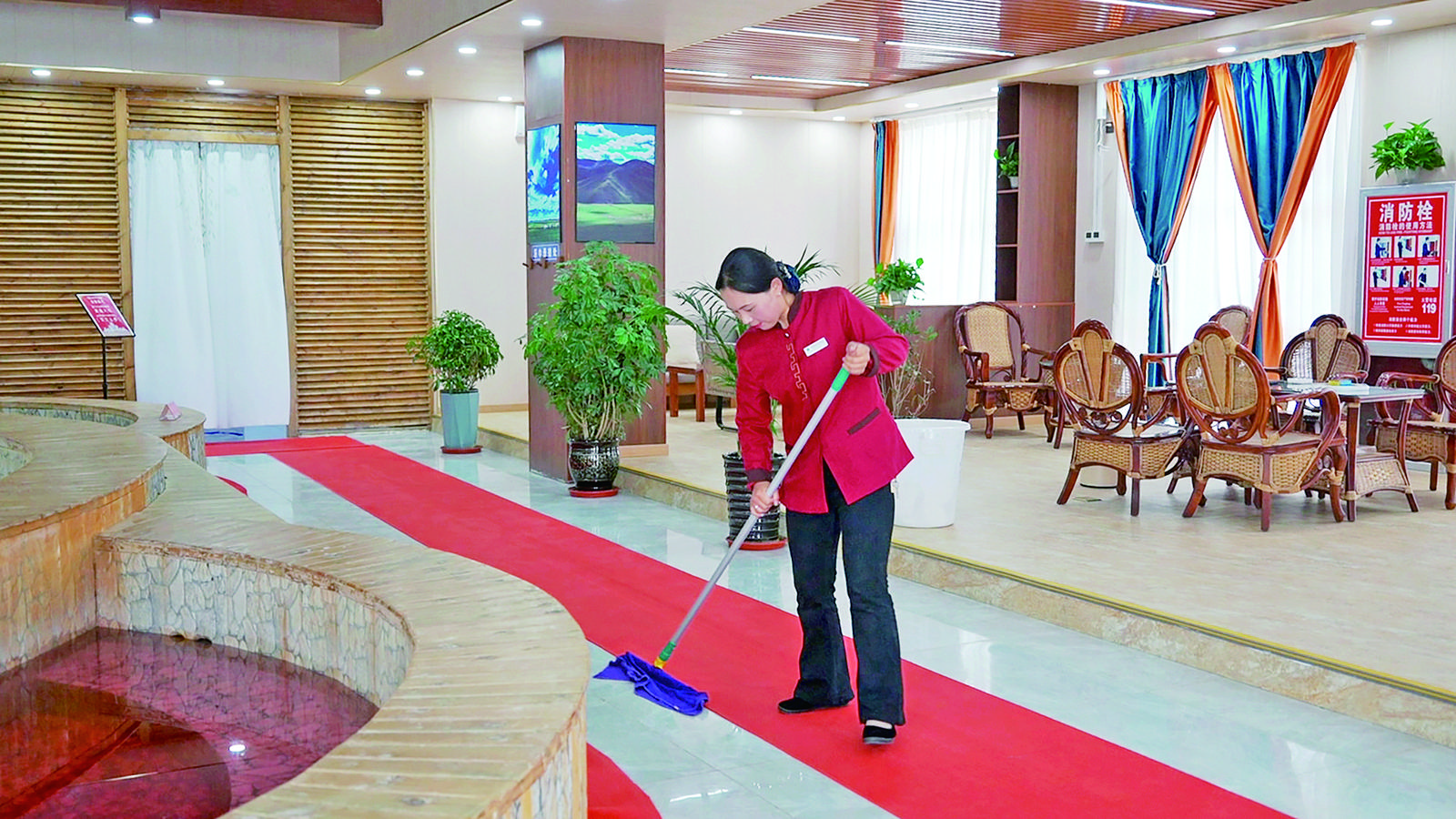 今年,通過改造后的溫泉酒店擁有客房19間,還增加了餐飲項(xiàng)目,帶動(dòng)村里畜產(chǎn)品銷售,同時(shí)帶動(dòng)村民增收。“現(xiàn)在客房還是太少,滿足不了旅行社、旅游團(tuán)的需求,為此,我們引導(dǎo)村民發(fā)展牧家樂,游客可以自由選擇,體驗(yàn)藏族風(fēng)情?!卑盒憷虻┱f。