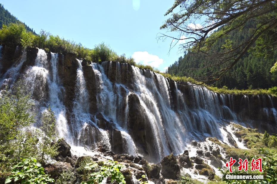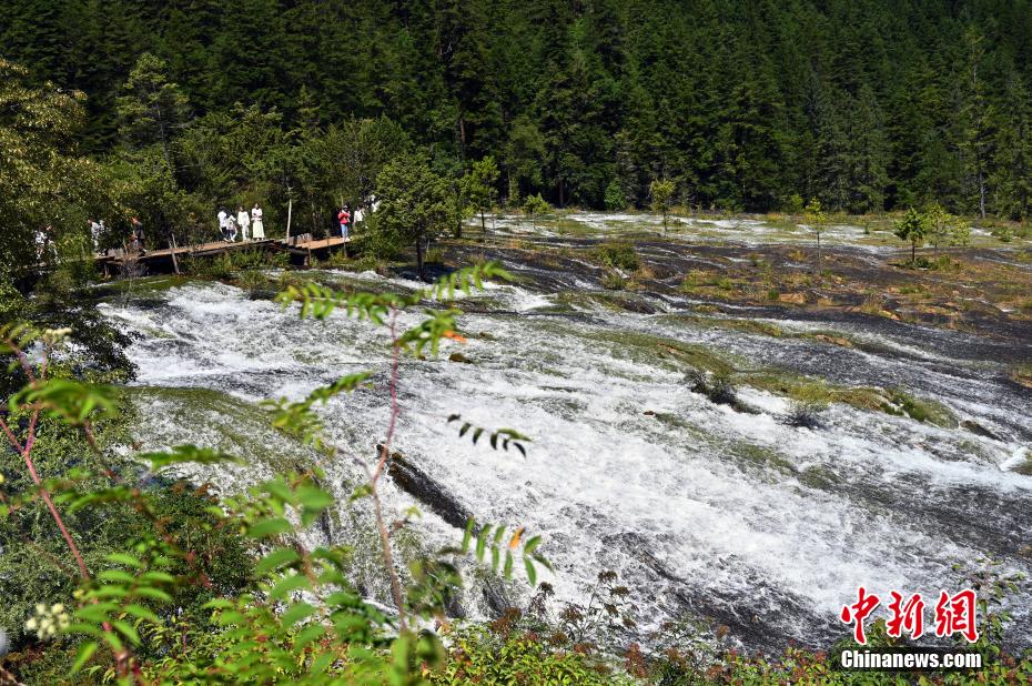 8月13日,世界自然遺產(chǎn)地九寨溝景區(qū)風景如畫,吸引眾多游客觀光游玩。