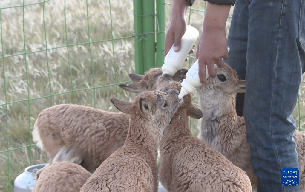 8月12日,在索南達(dá)杰保護(hù)站,保護(hù)站工作人員在給小藏羚羊喂奶。杜笑微 攝
