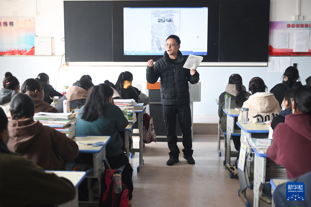 2023年2月23日,援青教師鐘祖華在青海省西寧市城北區(qū)的西寧果洛中學給學生上課。新華社記者 張龍 攝