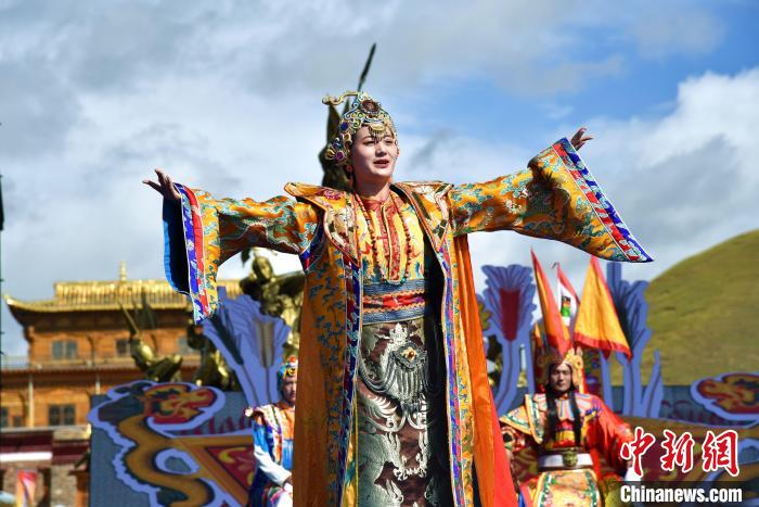 9月12日,在青海省果洛藏族自治州甘德縣柯曲草原,當(dāng)?shù)孛癖娬寡菔吩妱 稁X格爾七寶賽馬》。該史詩劇的編排靈感源自當(dāng)?shù)孛耖g口口相傳的《格薩爾王傳》,說唱藝人通過吟唱與動作相結(jié)合的形式,講述了傳說中嶺國國王格薩爾賽馬稱王的故事。此間表演的民族服裝秀、才藝展示等,也彰顯了“中國格薩爾文化之鄉(xiāng)”的魅力。