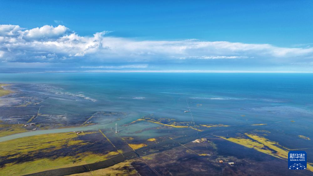 這是9月24日在青海省海北藏族自治州剛察縣拍攝的青海湖(無人機照片)。新華社記者 白瑪央措 攝