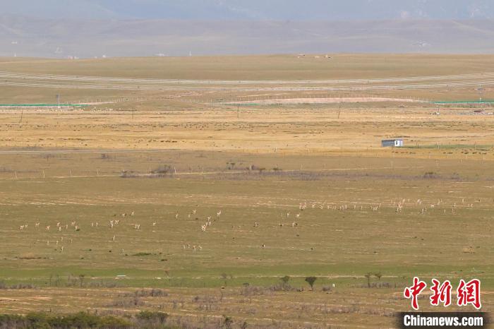 9月26日,在青海湖北岸的青海省海北藏族自治州剛察縣哈爾蓋普氏原羚科普研學教育基地內(nèi),拍攝到的野生普氏原羚群。目前,中國國家一級重點保護野生動物普氏原羚野外種群數(shù)量從監(jiān)測之初不足300只恢復至3000余只。普氏原羚現(xiàn)僅分布于青海湖環(huán)湖區(qū)域,其中,以剛察縣哈爾蓋河流域最為集中。中新社記者 薛蒂 攝
