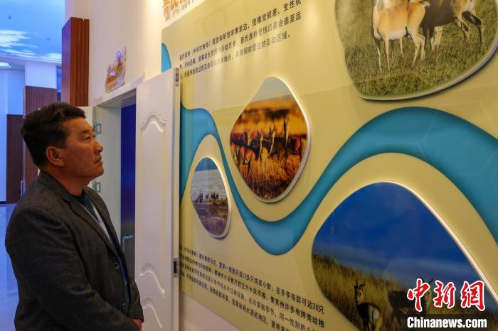 9月26日,在青海湖北岸的青海省海北藏族自治州剛察縣哈爾蓋普氏原羚科普研學教育基地內(nèi),參觀人員閱讀了解普氏原羚相關(guān)知識。目前,中國國家一級重點保護野生動物普氏原羚野外種群數(shù)量從監(jiān)測之初不足300只恢復至3000余只。普氏原羚現(xiàn)僅分布于青海湖環(huán)湖區(qū)域,其中,以剛察縣哈爾蓋河流域最為集中。中新社記者 薛蒂 攝
