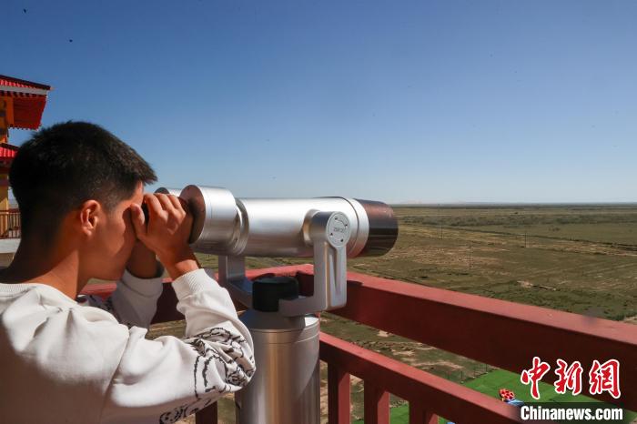 9月26日,在青海湖北岸的青海省海北藏族自治州剛察縣哈爾蓋普氏原羚科普研學教育基地內(nèi),參觀人員在觀測臺上通過望遠鏡觀察野生普氏原羚。目前,中國國家一級重點保護野生動物普氏原羚野外種群數(shù)量從監(jiān)測之初不足300只恢復至3000余只。普氏原羚現(xiàn)僅分布于青海湖環(huán)湖區(qū)域,其中,以剛察縣哈爾蓋河流域最為集中。中新社記者 薛蒂 攝