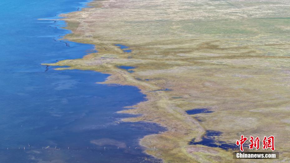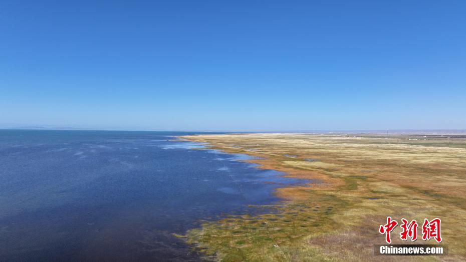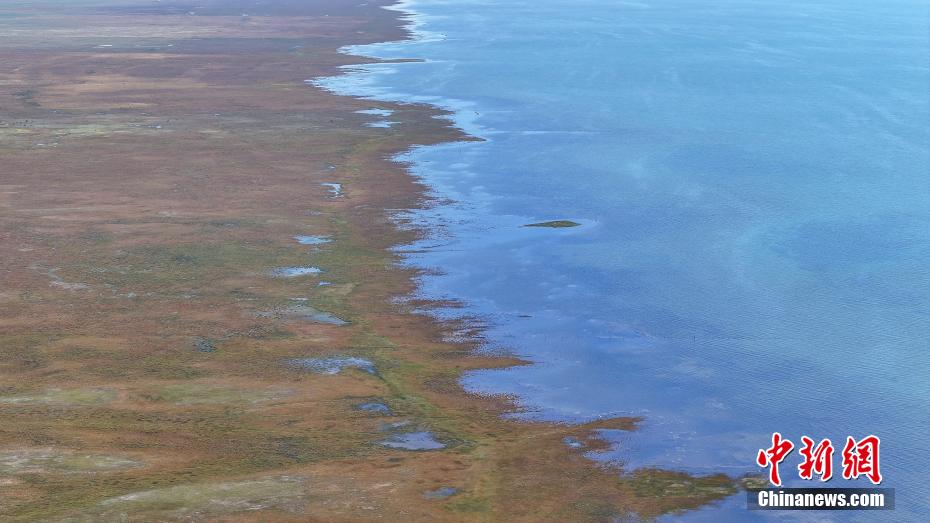 9月26日,航拍青海省海北藏族自治州剛察縣仙女灣秋日風光。仙女灣位于青海湖北岸,是青海湖重要高原草甸濕地,生物多樣性豐富。圖為航拍青海省海北藏族自治州剛察縣仙女灣。中新社記者 薛蒂 攝
