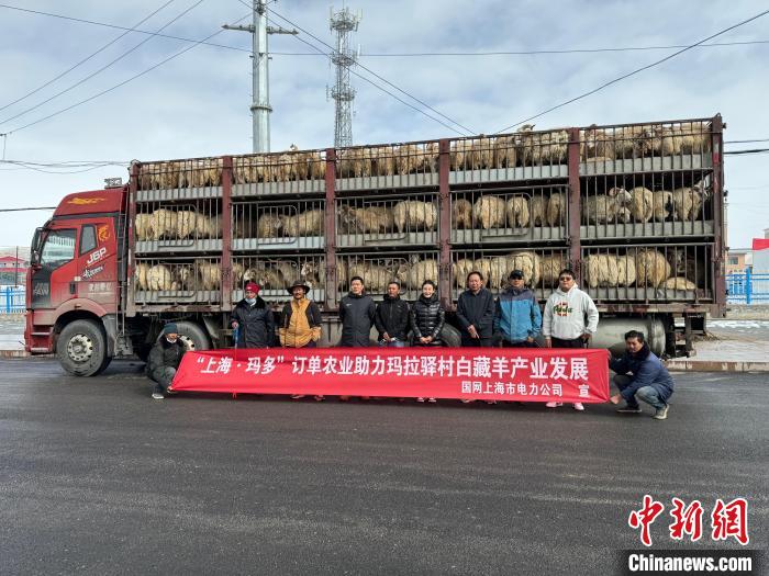 圖為瑪多藏羊裝車發(fā)往上海。(資料圖) 瑪多縣委宣傳部 供圖
