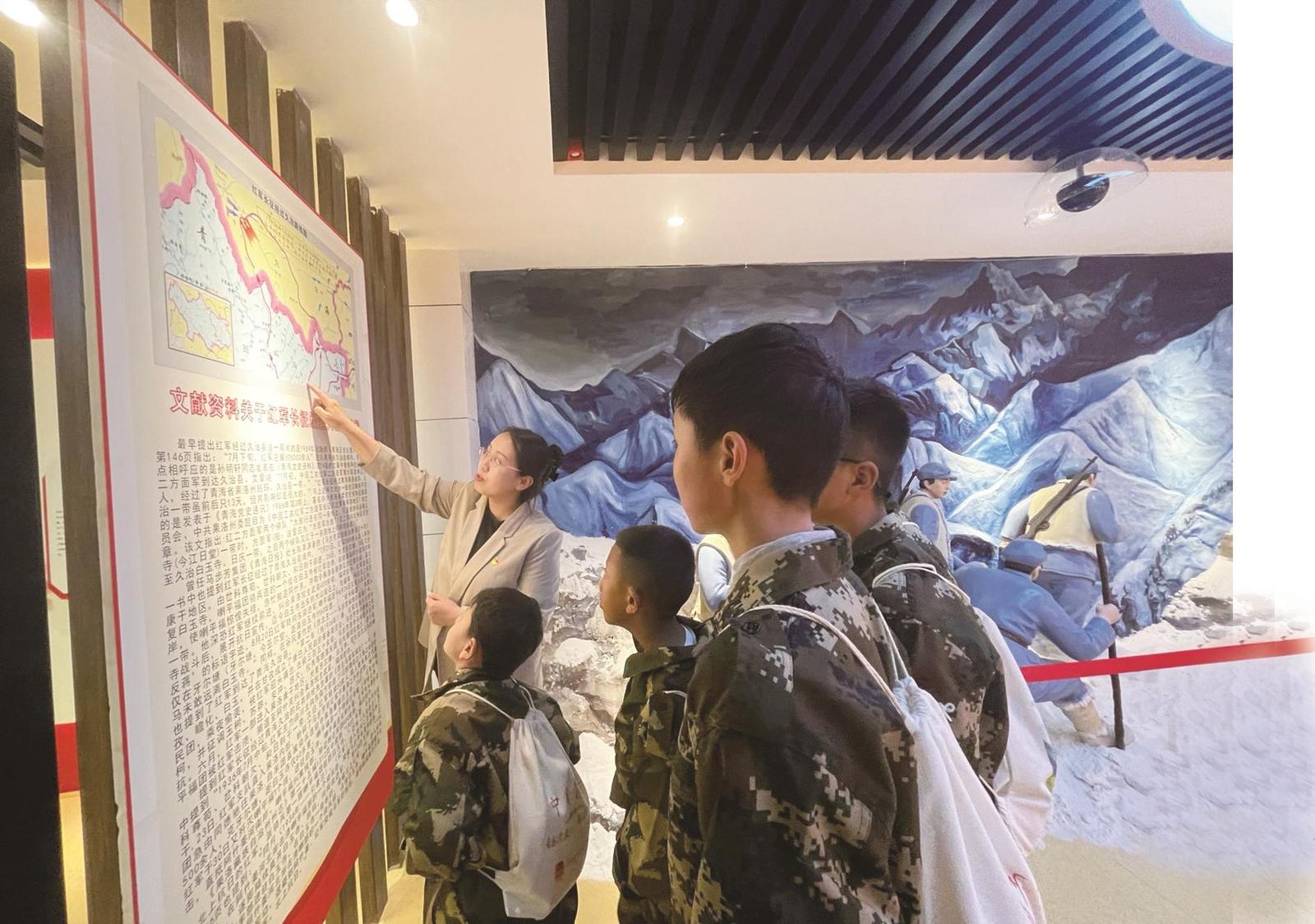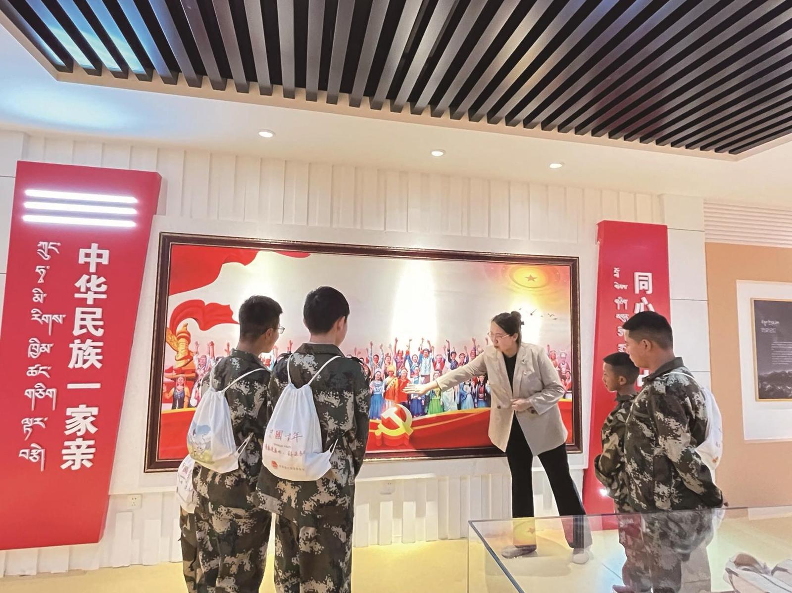 “小朋友別著急,進入下一個展廳后我就會告訴你了?!彼髂献楷斠贿吥托慕獯鹬鴮W生們的問題,一邊引領(lǐng)大家走進鑄牢中華民族共同體意識教育廳,她指著展廳內(nèi)的一幅舊照片說,這位是久治縣和平解放初期的部落頭人康萬慶先生,他積極與當時的果洛工作團溝通聯(lián)系,是首位接觸共產(chǎn)主義思想的愛國進步人士,對久治和平解放、順利建政起到了非常重要的作用……