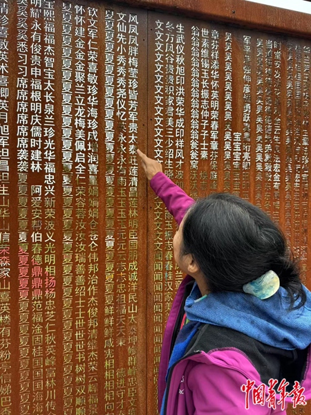 “核二代”夏鵬重返金銀灘,在“596”長(zhǎng)廊上找到父親夏永泰的名字。胡春艷 攝
