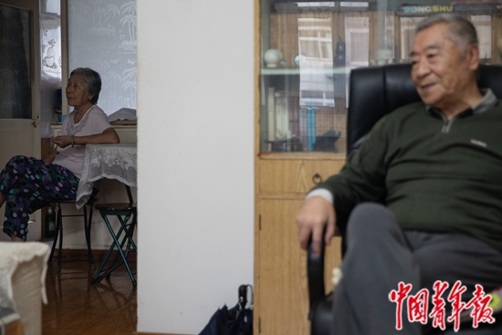 黃克驥老人接受采訪(fǎng)時(shí),愛(ài)人一直坐在客廳里旁聽(tīng)。鄭萍萍 攝
