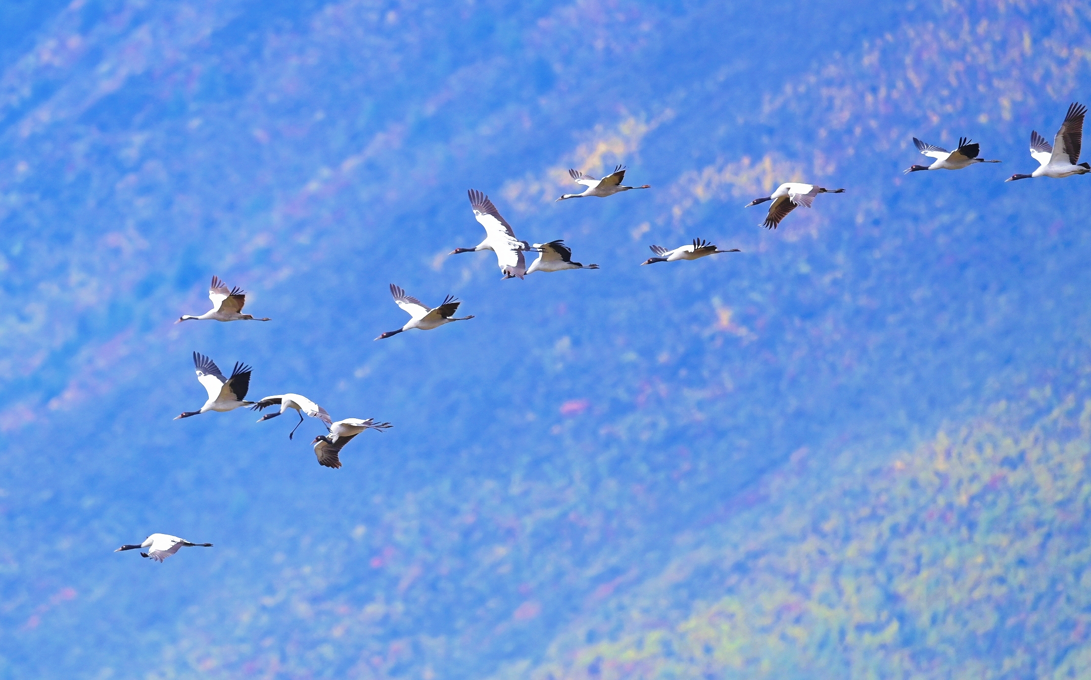 值得注意的是,其中4只黑頸鶴是今年在納帕海度夏的留守鳥。根據(jù)近年來的監(jiān)測結(jié)果顯示,納帕海的黑頸鶴已打破“來時不過九月九,去時不過三月三”的規(guī)律,一般于每年9月下旬或10月上旬陸續(xù)遷來,至次年5月大部隊遷離完畢。