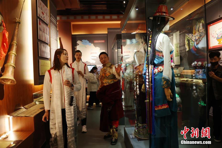圖為奧運冠軍在海南州了解文成公主進(jìn)藏歷史。中新社記者 張?zhí)砀?攝
