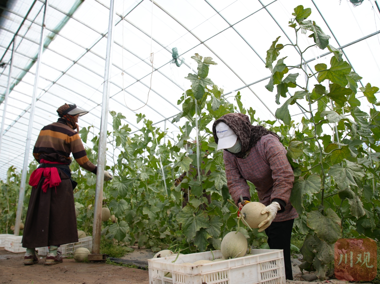 10月24日,位于阿壩州松潘縣川主寺鎮(zhèn)的松潘高原現(xiàn)代農(nóng)業(yè)產(chǎn)業(yè)園區(qū)內(nèi),豐收的高原網(wǎng)紋瓜進入采摘期。