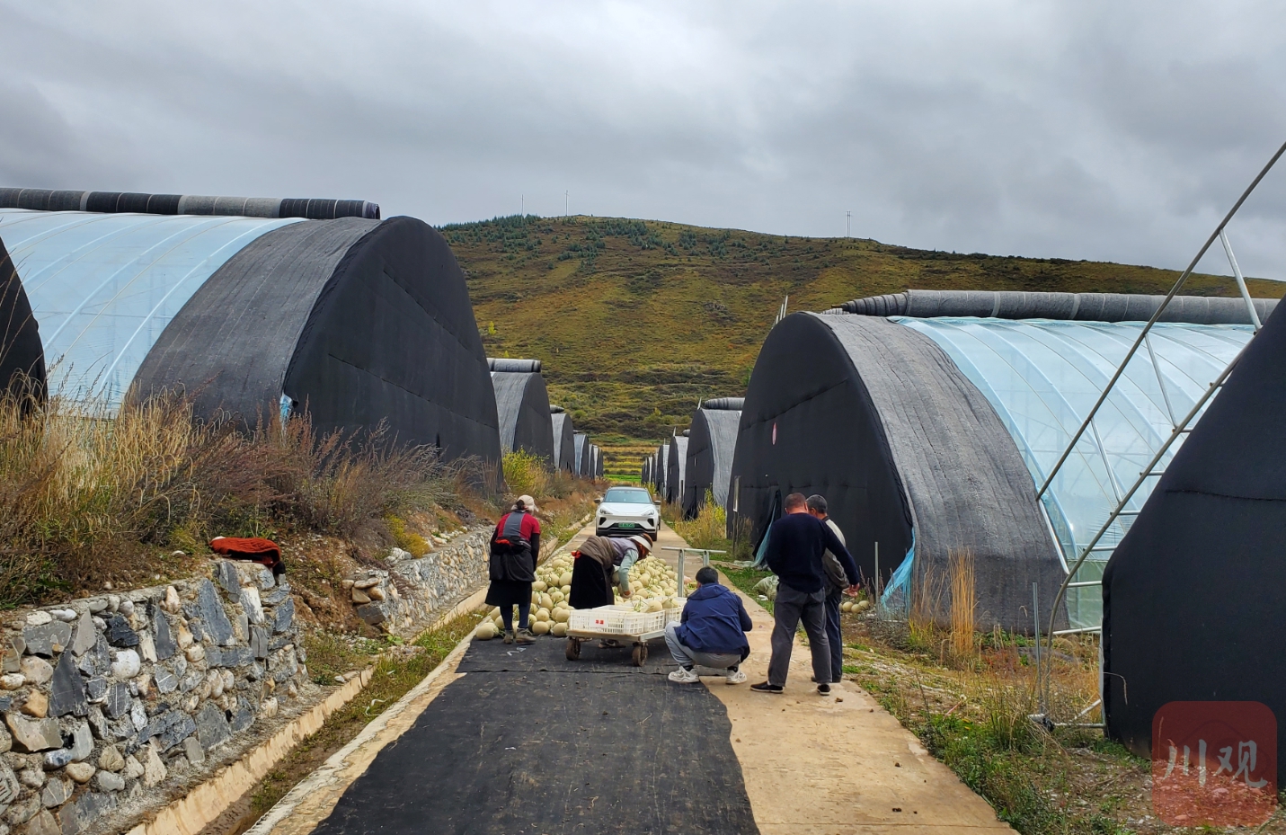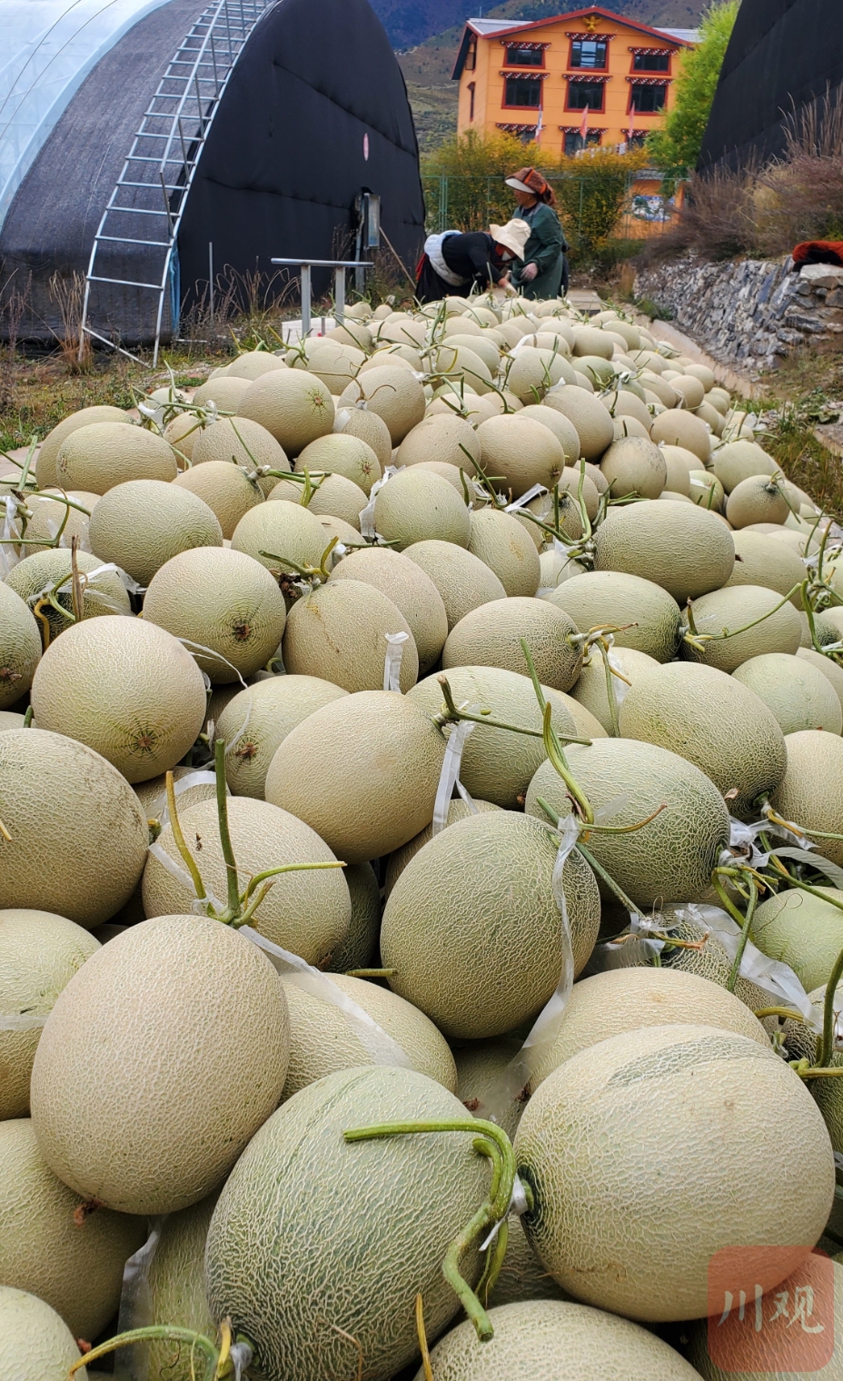 10月24日,客商在松潘高原現(xiàn)代農(nóng)業(yè)產(chǎn)業(yè)園區(qū)內(nèi)收購網(wǎng)紋瓜。