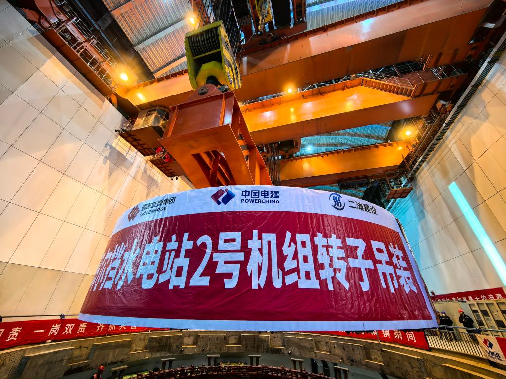 10月28日,青?,敔枔跛娬咀詈笠慌_(tái)(2號(hào))機(jī)組轉(zhuǎn)子順利吊裝就位。杜亮亮 攝