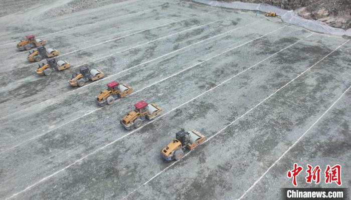 全面應用無人碾壓機群筑壩。華電金上公司供圖