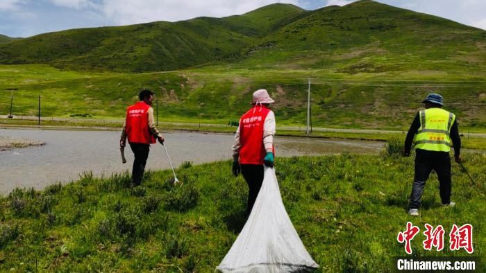 圖為果洛州生態(tài)管護員撿拾垃圾。(資料圖) 果洛州委宣傳部 供圖
