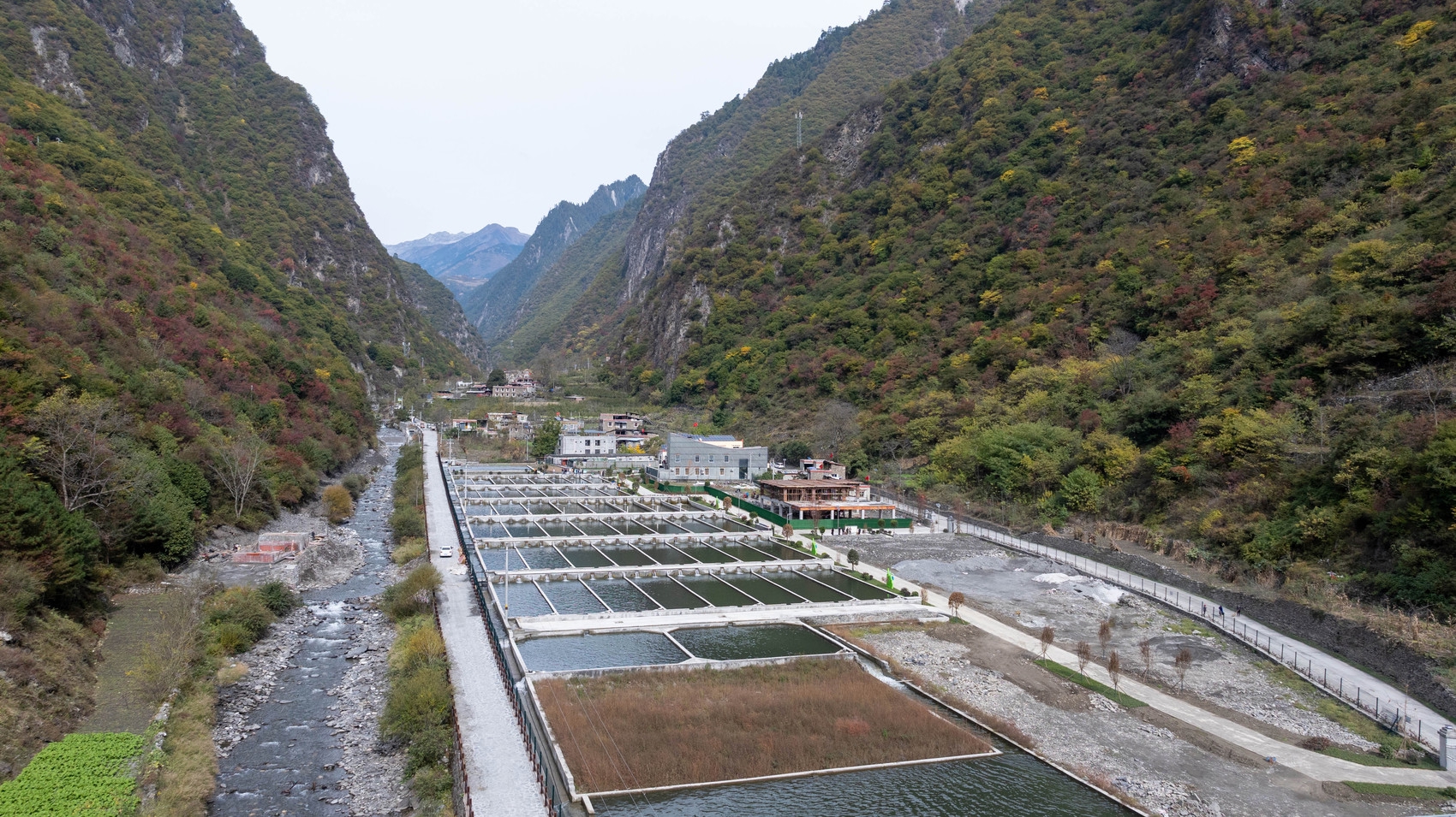50個長方形養(yǎng)殖池依次排列,清澈的冷泉水在其中潺潺流動,不時有魚兒躍出水面。11月7日一早,“萬千氣象看四川”四季度集中采訪活動報道組來到理縣薛城鎮(zhèn)甲米村,在海拔2000米的地方,見到了初具規(guī)模的高原特色冷水魚產(chǎn)業(yè)基地,這也是阿壩州第一家規(guī)?;渌~養(yǎng)殖基地。