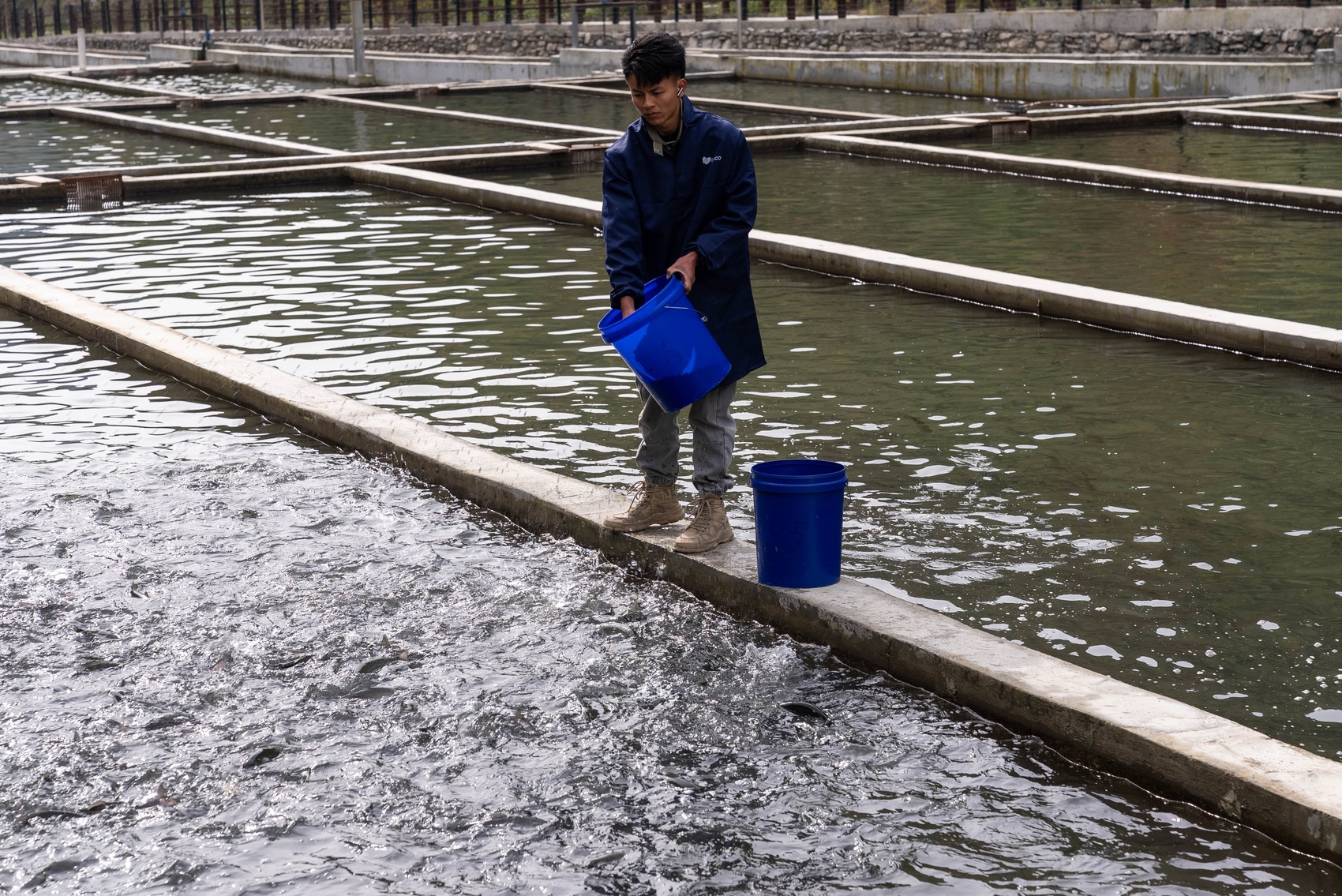 “今天水溫大概是9到10攝氏度,這是非常適合冷水魚的溫度?!被仞B(yǎng)殖企業(yè)四川冷水魚農(nóng)業(yè)開發(fā)有限公司總經(jīng)理朱旭波說。