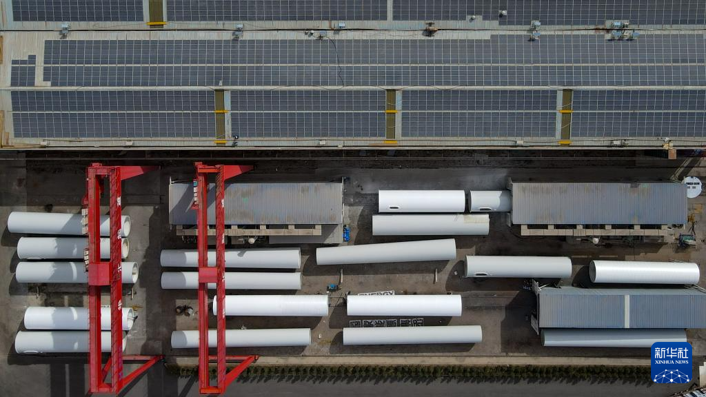 青海華匯新能源有限公司塔筒車間工人在檢查塔筒(10月10日攝)。新華社發(fā)(潘彬彬 攝)