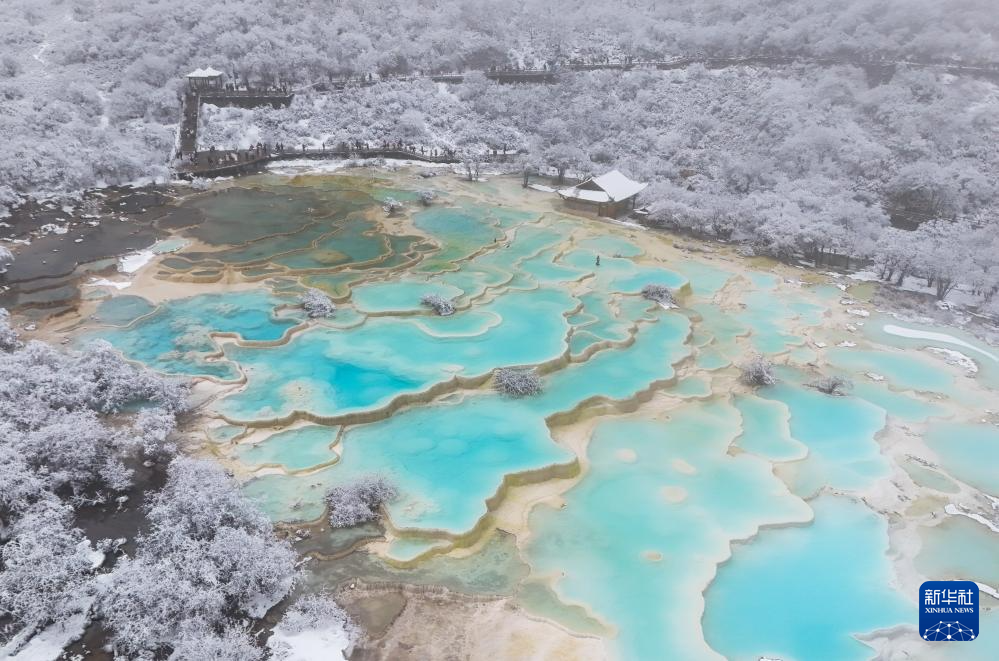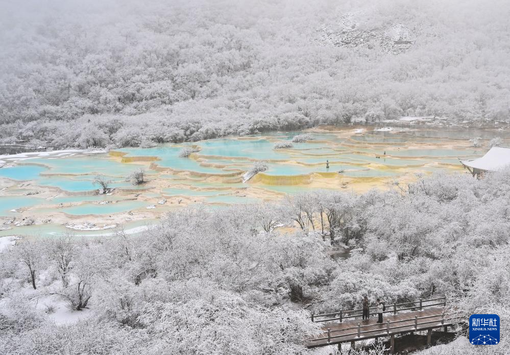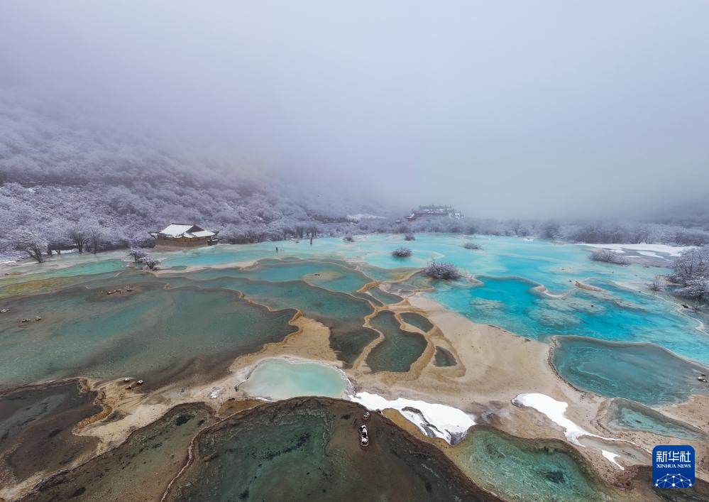 11月18日,雪后的四川省阿壩藏族羌族自治州黃龍景區(qū)薄霧彌漫,仿佛披上了一層輕紗,如夢(mèng)如幻。