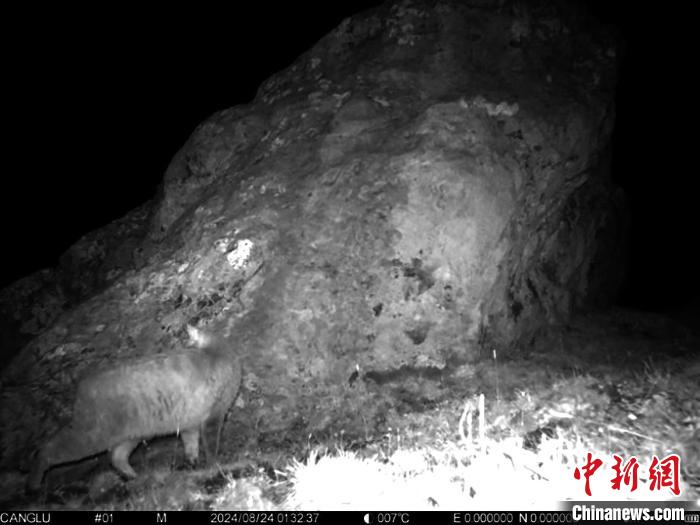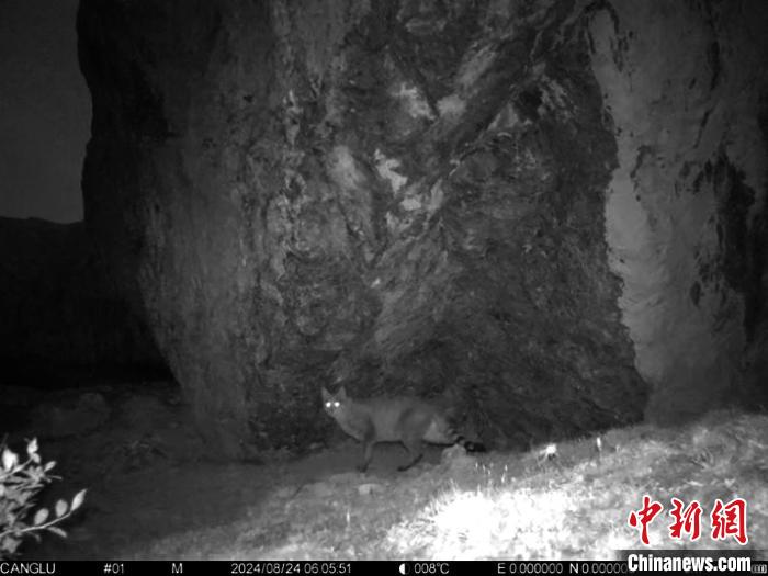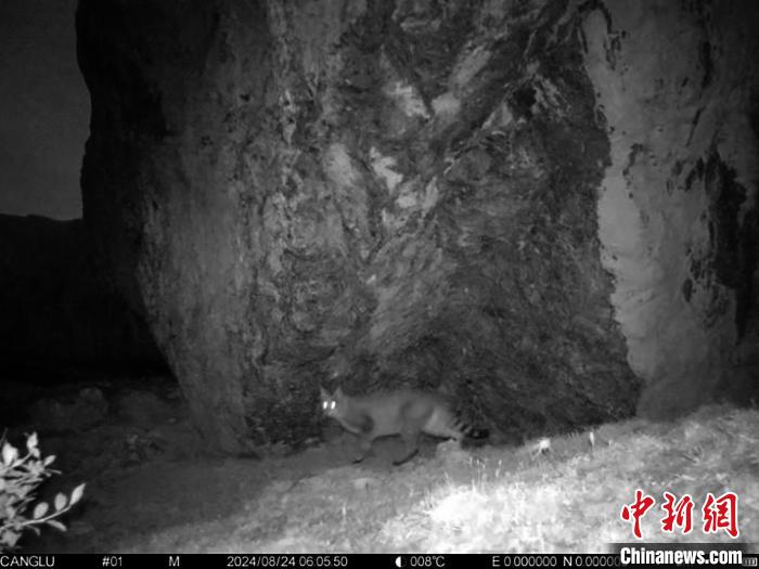 紅外相機(jī)拍攝到的荒漠貓照片。九寨溝景區(qū)管理局供圖