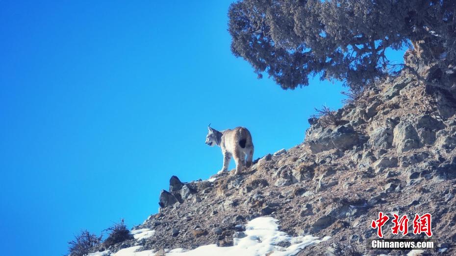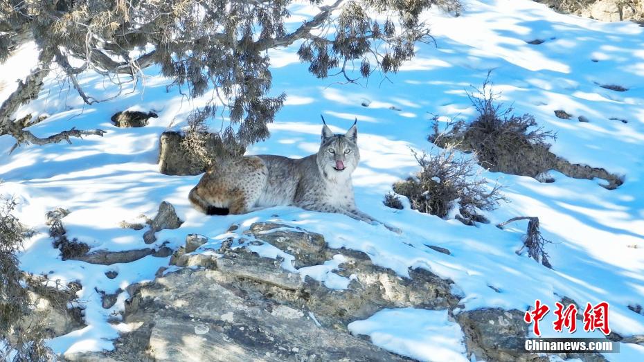 日前,在青海省海西州德令哈市尕海鎮(zhèn)陶哈村,攝影愛好者用鏡頭捕捉到兩只猞猁在雪山草地中悠然踱步的珍貴畫面。猞猁外形似貓,但比貓?bào)w形大,屬于中型猛獸,耳朵尖端長有黑色聳立的簇毛,是一種離群獨(dú)居的野生動(dòng)物。近年來,隨著柴達(dá)木盆地生態(tài)保護(hù)力度加強(qiáng),當(dāng)?shù)財(cái)z影愛好者時(shí)常在溝里鄉(xiāng)地區(qū)拍攝到雪豹、猞猁、兔猻、狼、巖羊等多種高原野生動(dòng)物。圖為猞猁在山頭享受陽光。