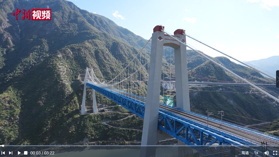 坐落于云南著名景區(qū)虎跳峽上的金沙江鐵路大橋是麗江至香格里拉鐵路(下稱“麗香鐵路”)的重點控制性工程,兩端分別連接玉龍雪山隧道和哈巴雪山隧道,全長882.5米,是世界首座大跨度鋼桁梁鐵路懸索橋。
