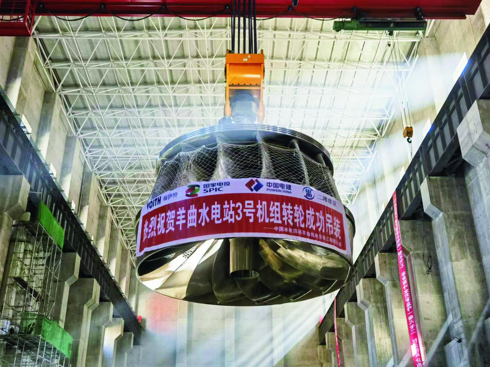 羊曲水電站3號機(jī)組轉(zhuǎn)輪成功吊裝。